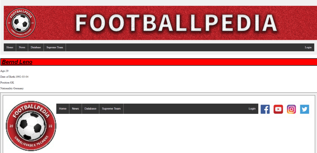 On a team project at university, we were tasked with creating a brand identity and functioning website for a company made up by the team, which in our case was Footballpedia. My input into the project included the creation of the logo, wireframes, and the database of football players.
